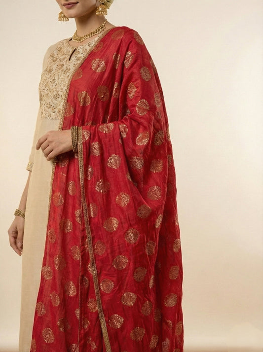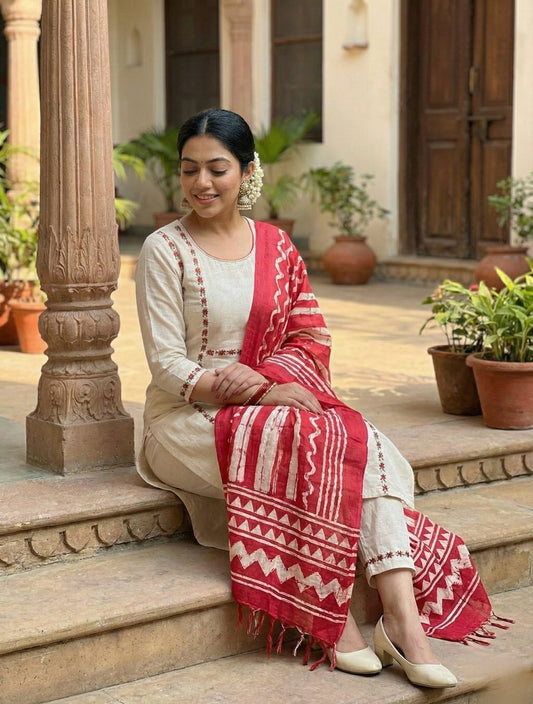 WOMEN OFF-WHITE KURTA WITH TROUSERS & DUPATTA